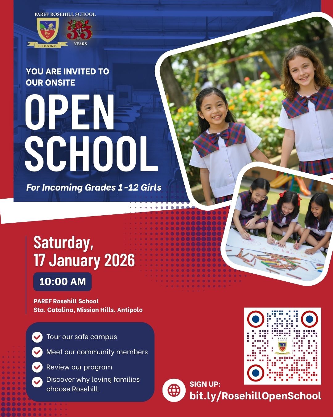 Join us for an exceptional Open School experience at PAREF Rosehill School for Girls in Antipolo. Here, we nurture not just minds but hearts, where personal integral education, character formation, and academic excellence come together in a supportive and inspiring environment.